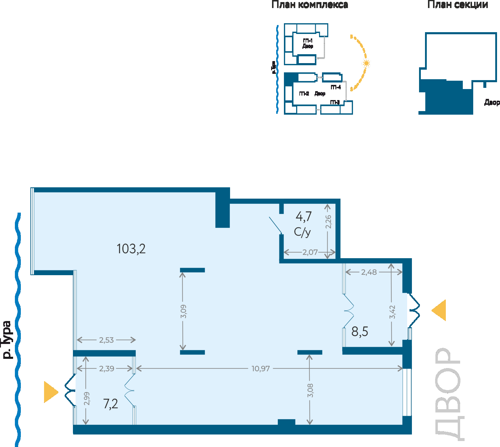 «Акватория» - масштабный макрорайон на берегу Туры с развитой инфраструктурой, зеленым окружением, большими террасами и функциональными планировками. Жилой комплекс выполнен в современном сдержанном стиле. В домах «Акватории» закрытые безопасные дворы, собственная автономная котельная, телеметрия, красивые парадные. Жилой комплекс «Акватория» — это не просто место для проживания, это целая экосистема, где каждый найдет свою гармонию.